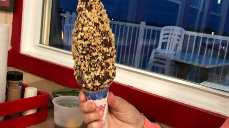 Sit on the dock and enjoy the view while having a homemade ENORMOUS Nutty Buddy icy treat from Harris Crab House.